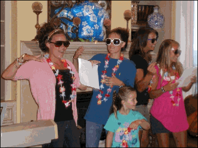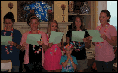 Rebekah, Emily, Lauren, Claire with Lily in front singing their Papa Mike rap song