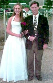 escorted by her father, Greg